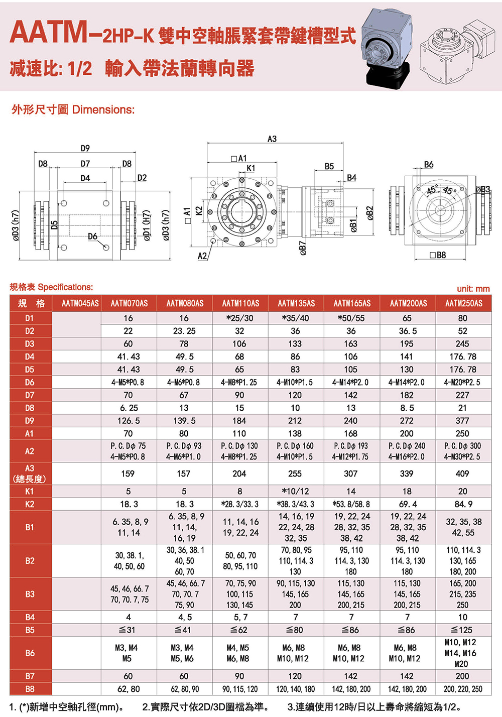 AATM-2HP-K中空轴胀紧套带键槽型式 输入带法兰转向器