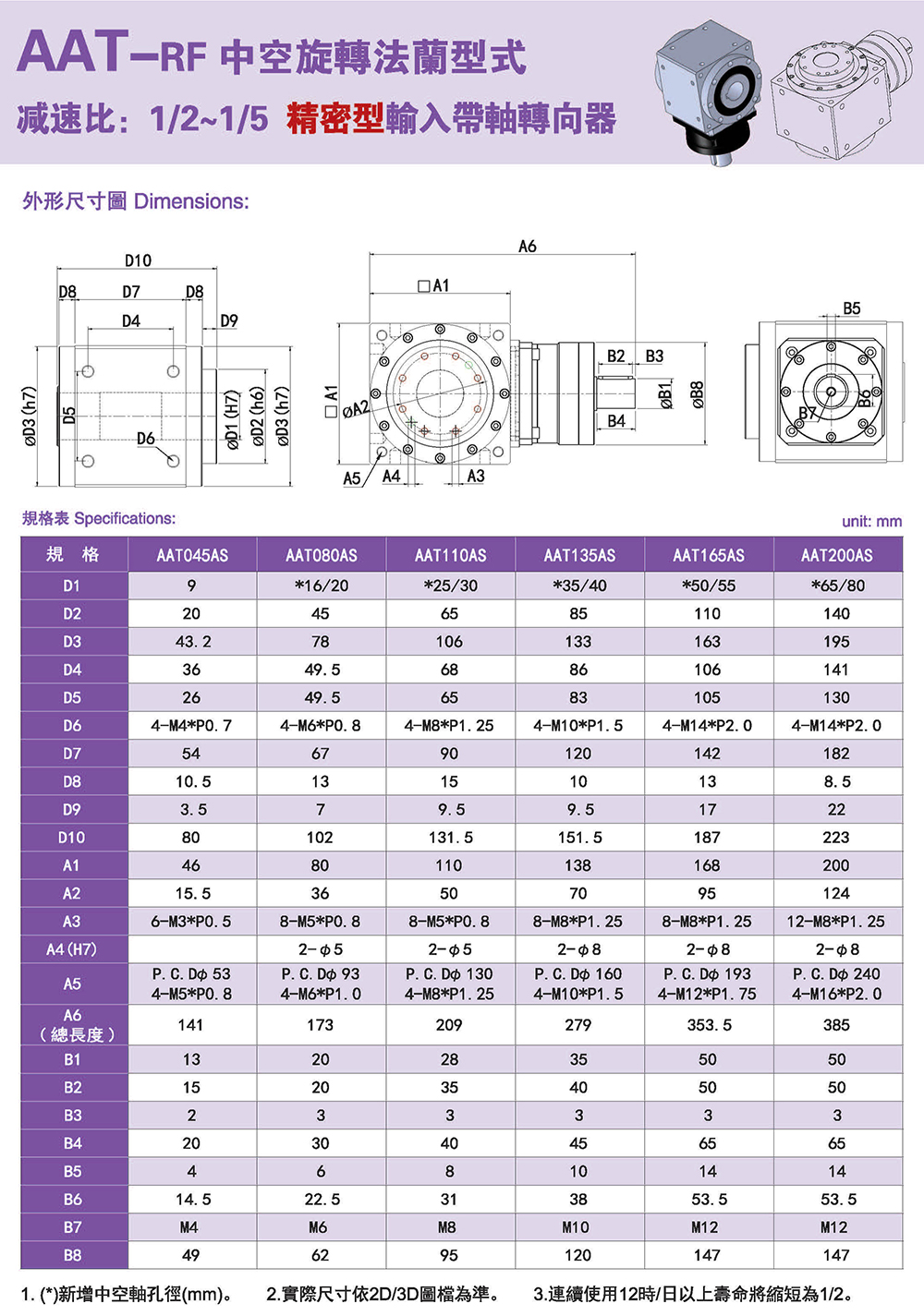 多样化:输出轴种类多样化,有单出力轴型、双出力轴型、中空轴型、中空法兰型、中空轴锥形紧迫性、螺杆直线型、螺牙直线型。