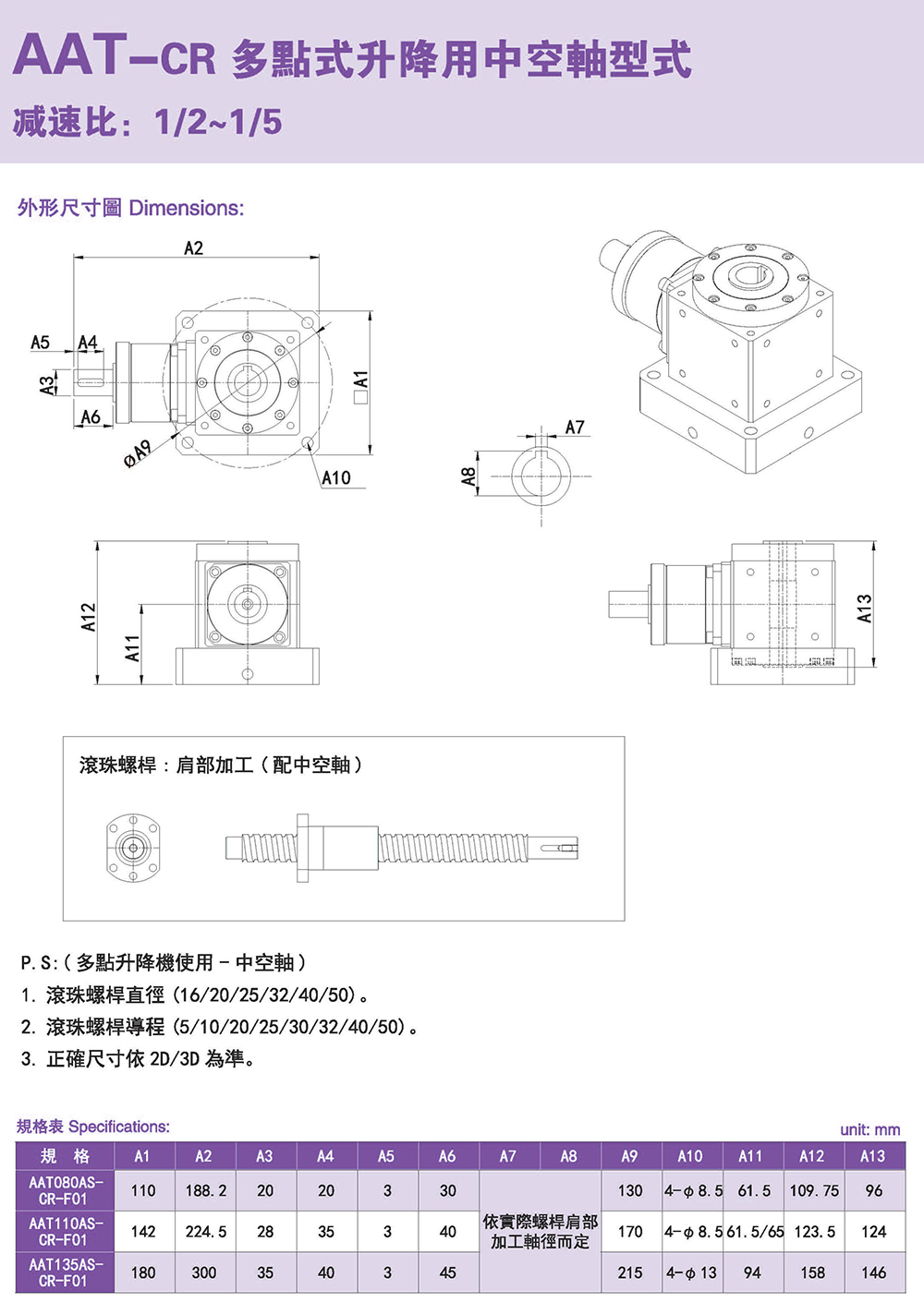 多样化:输出轴种类多样化,有单出力轴型、双出力轴型、中空轴型、中空法兰型、中空轴锥形紧迫性、螺杆直线型、螺牙直线型。