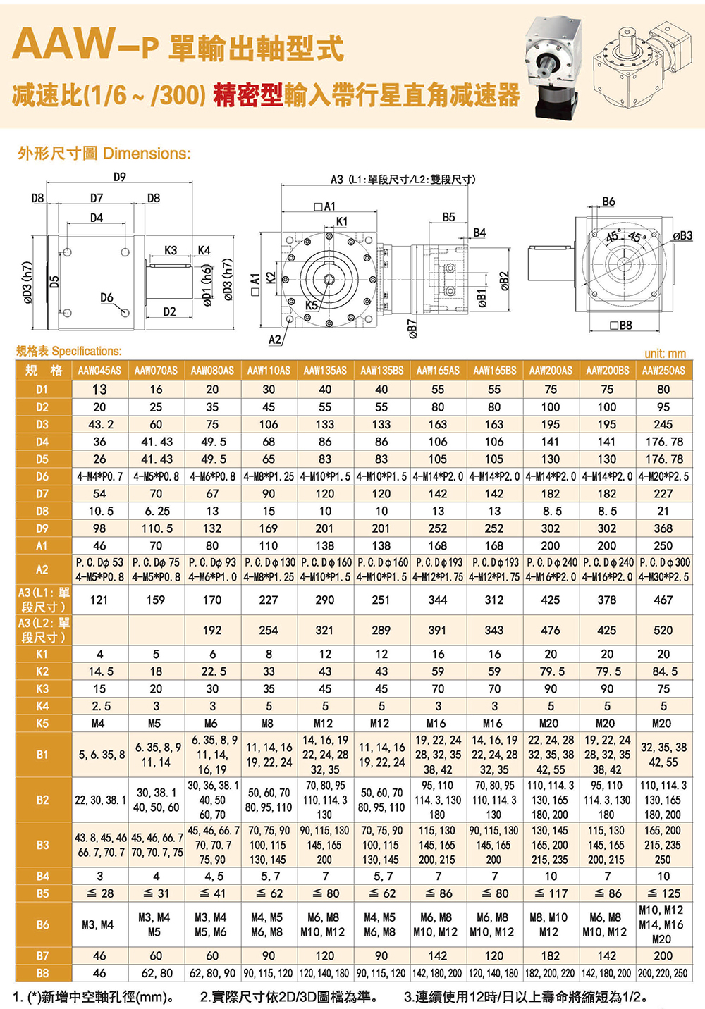 AAW-P单输出轴型式 精密型输入带直角行星减速器