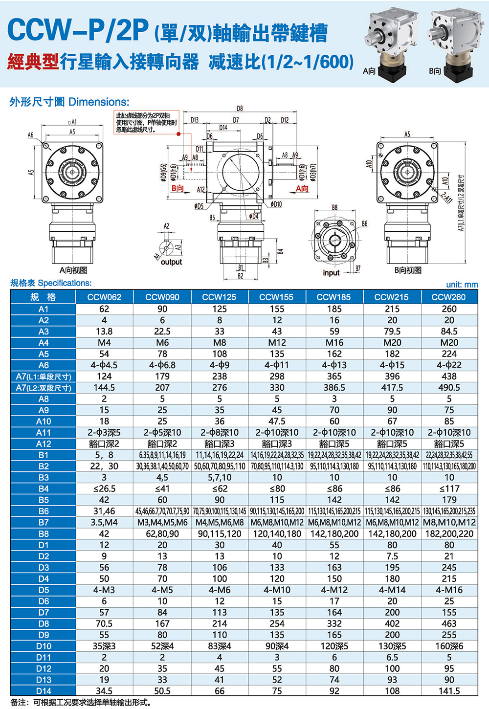 CCW-P 单轴输出带键槽 经典型行星输入接转向器