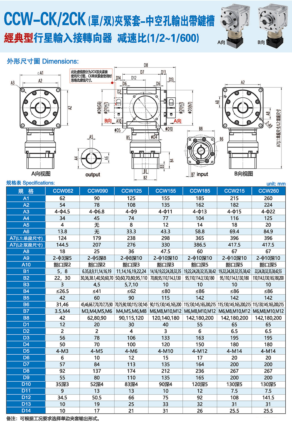 CCW-CK 单夹紧套-中空孔输出带键槽 经典型行星输入接转向器