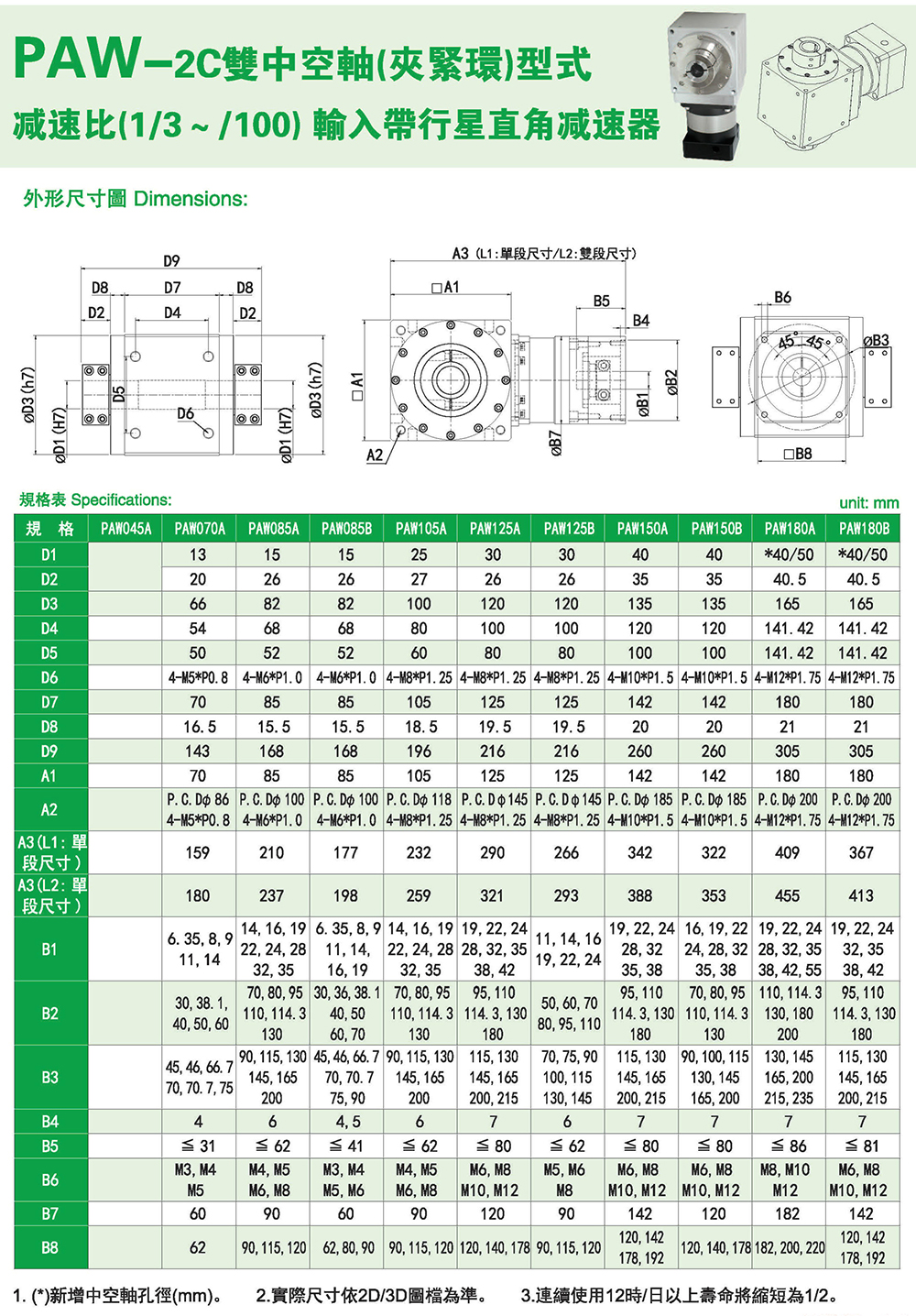 PAW-2C双中空轴(夹紧环)型式 输入带行星直角减速器