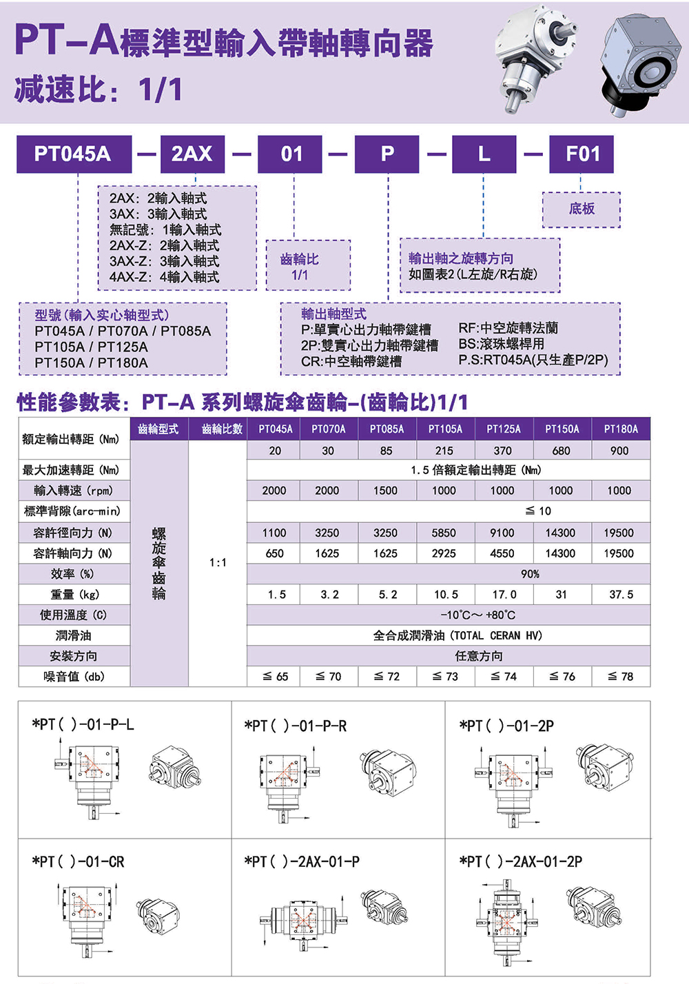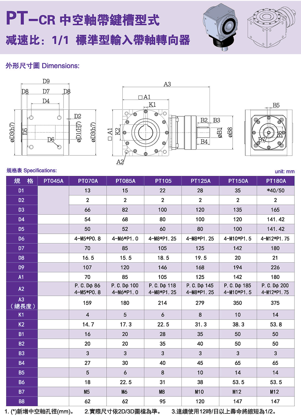 PT-CR中空轴帶键槽型式 标准型输入带轴转向器
