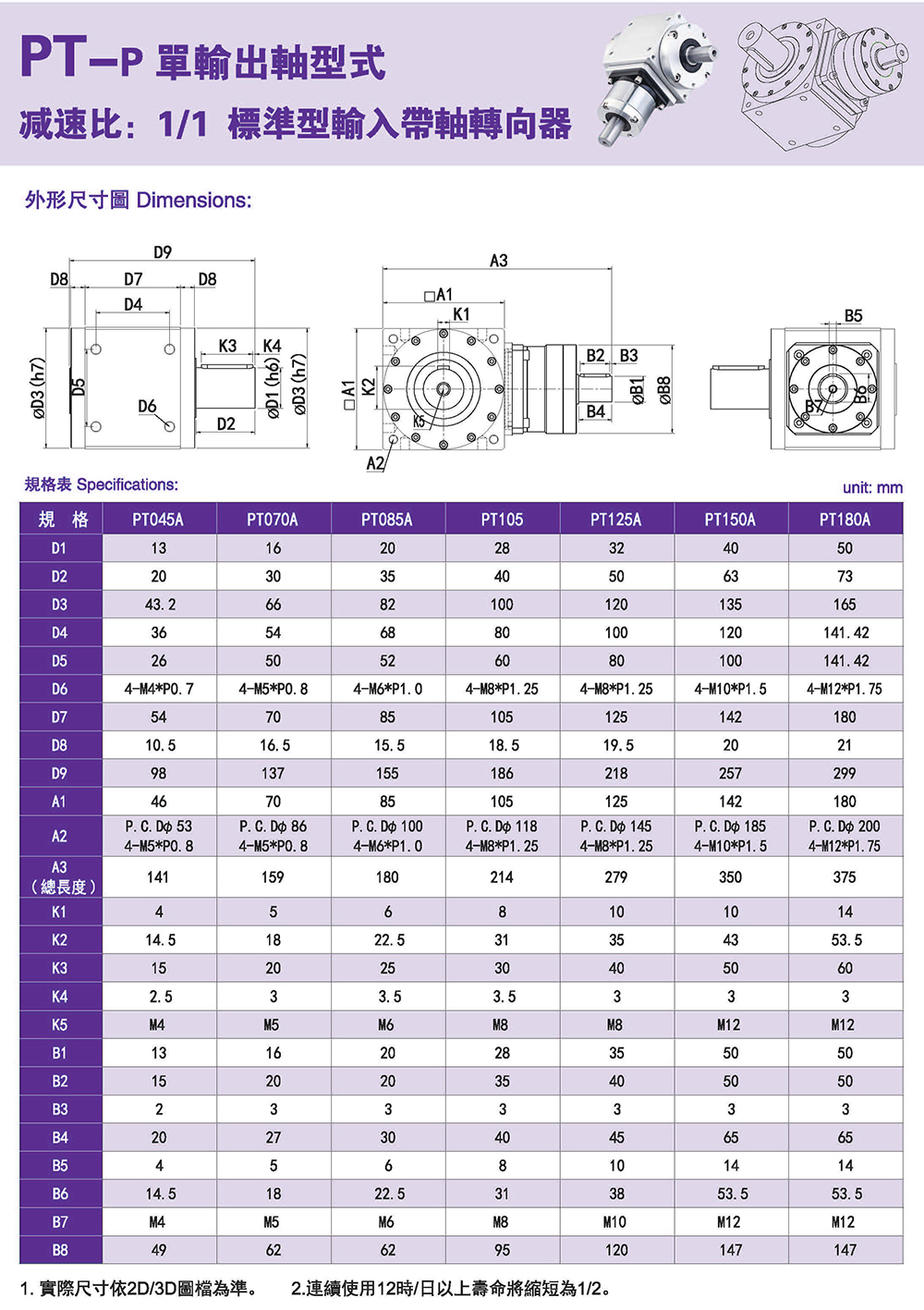 PT-P单输出轴型式 标准型输入带轴轴向器