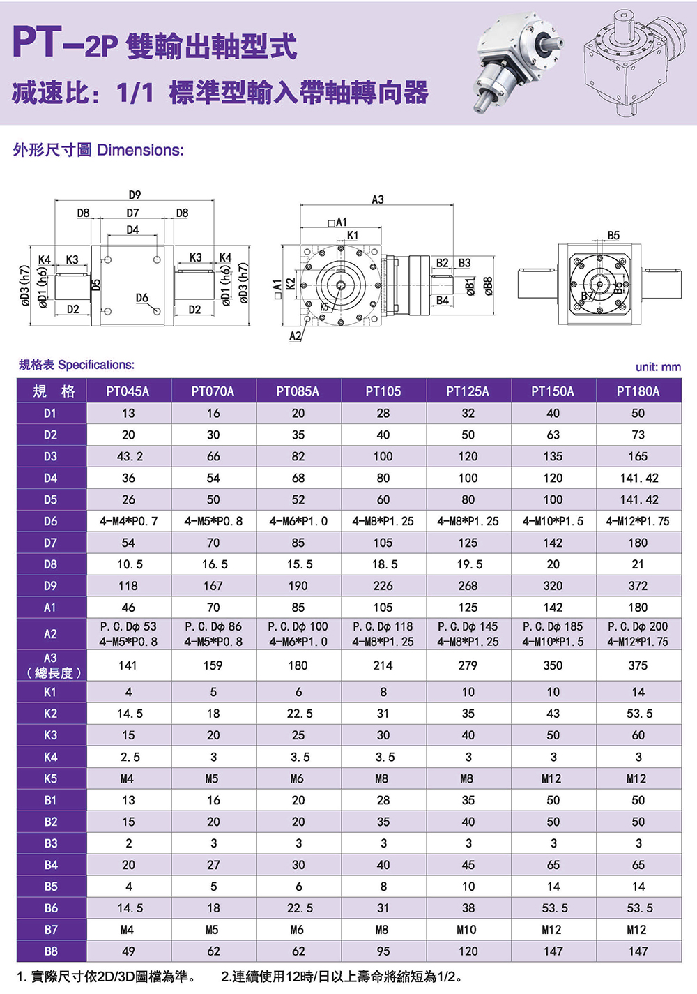 PT-2P双输出轴型式 标准型输入带轴轴向器