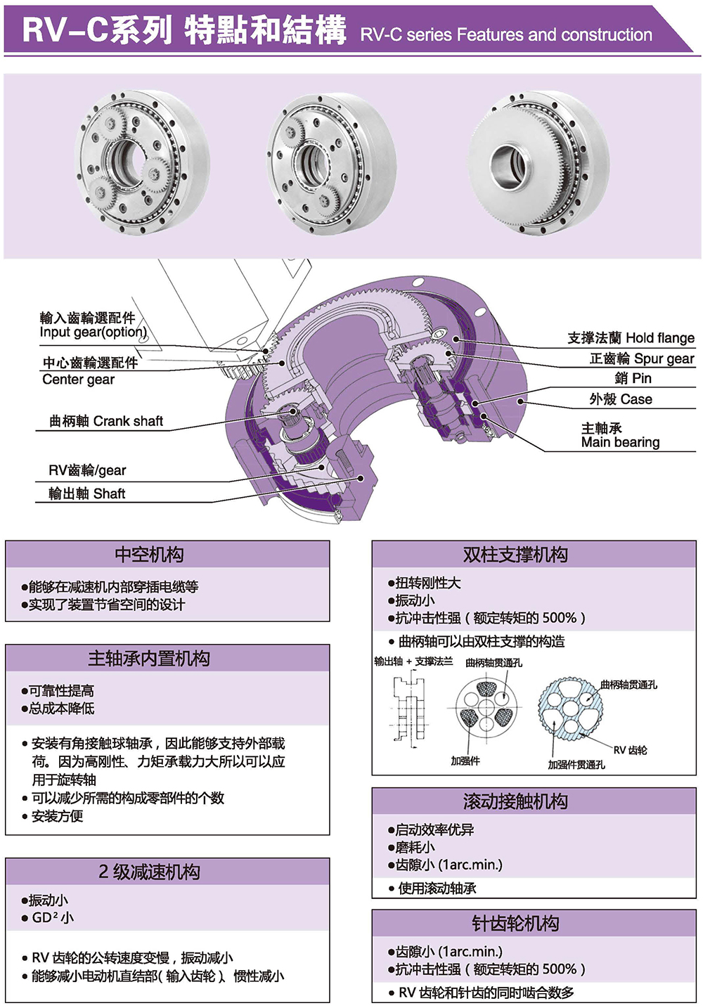此系列专为机械手臂开发,而RV-C拥有轻盈的机身,薄型的身长大大的减速机手臂传动的惯性使其定位更佳的精准。