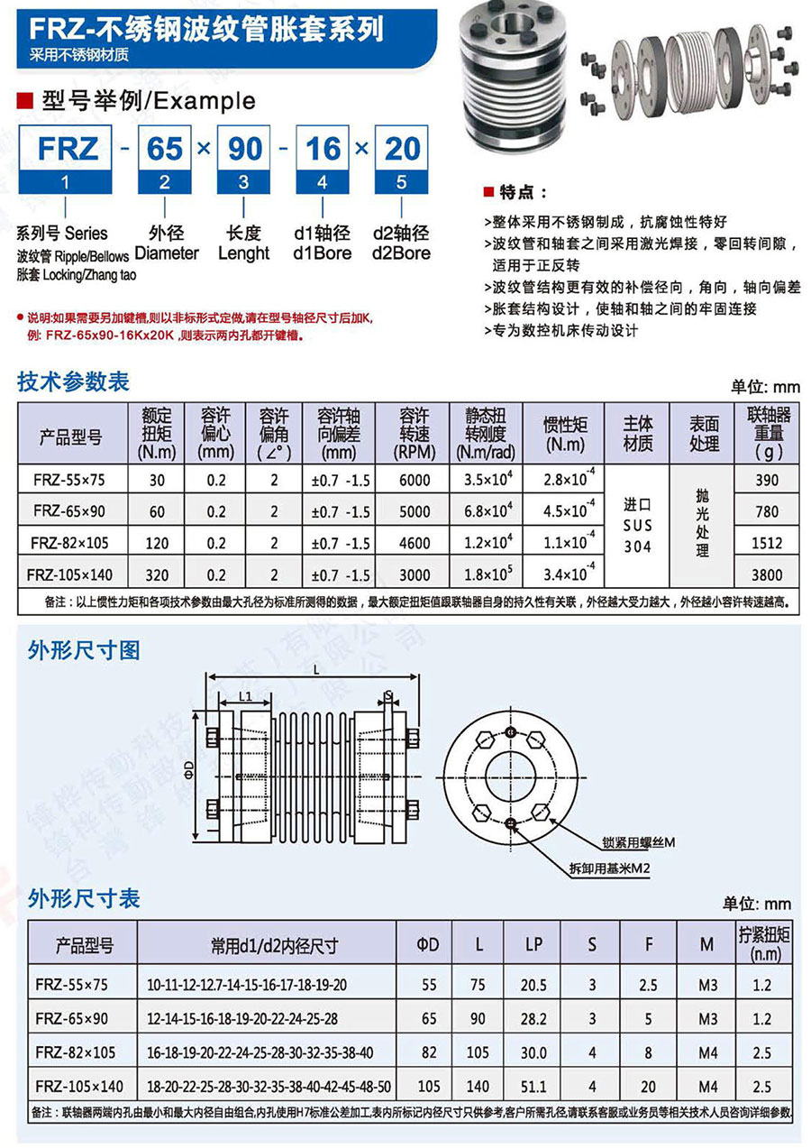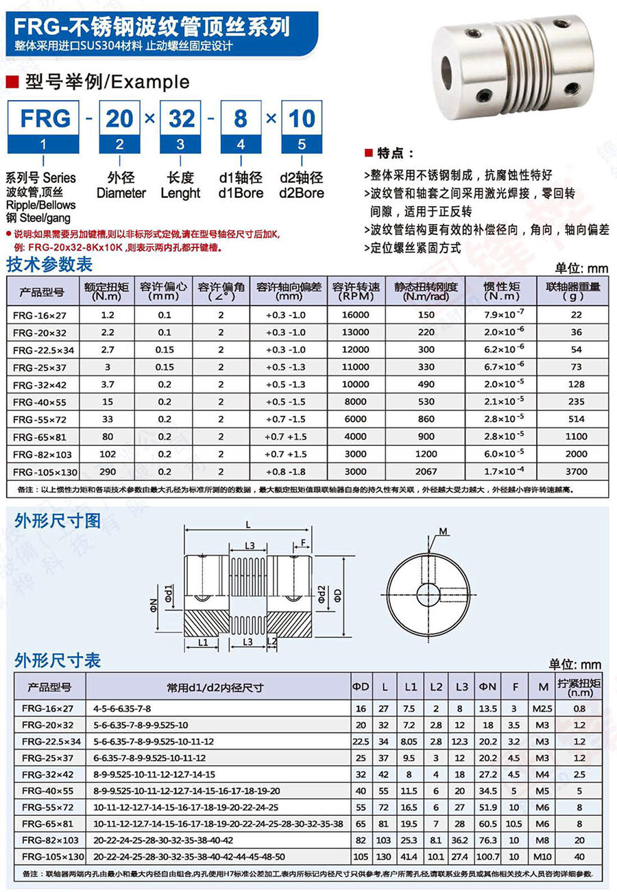 >轴套材料为铝合金,中间波纹管为不锈钢材质抗腐蚀性特好