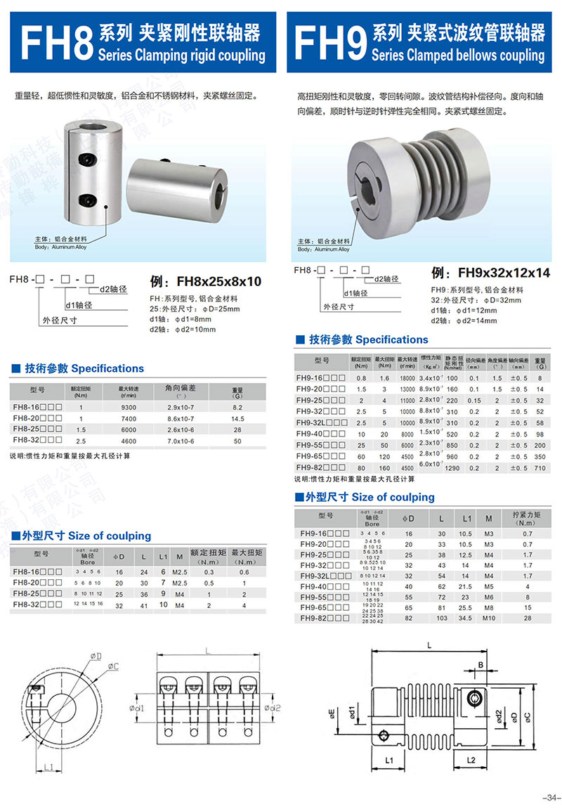 利用胀套联接的梅花弹性体联轴器零回转间隙,拆装方便高灵敏度传递力矩大顺时针与逆时针回转特性相同可吸收振动、补偿径向、角度和轴向偏差常用于伺服电机、步进电机联结。