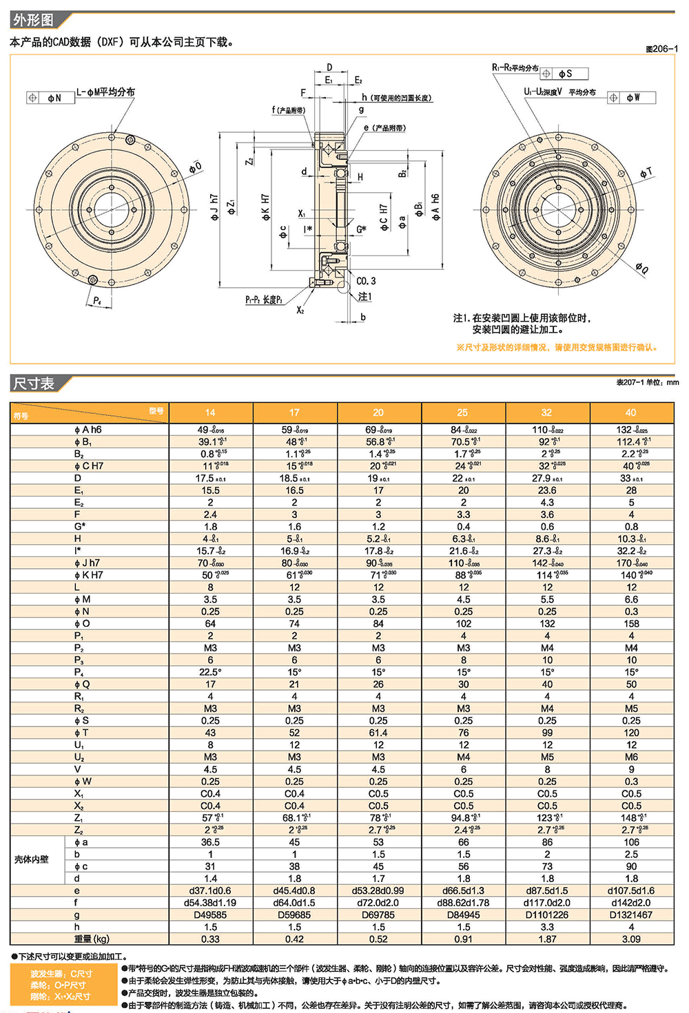 技术参数及标准尺寸: