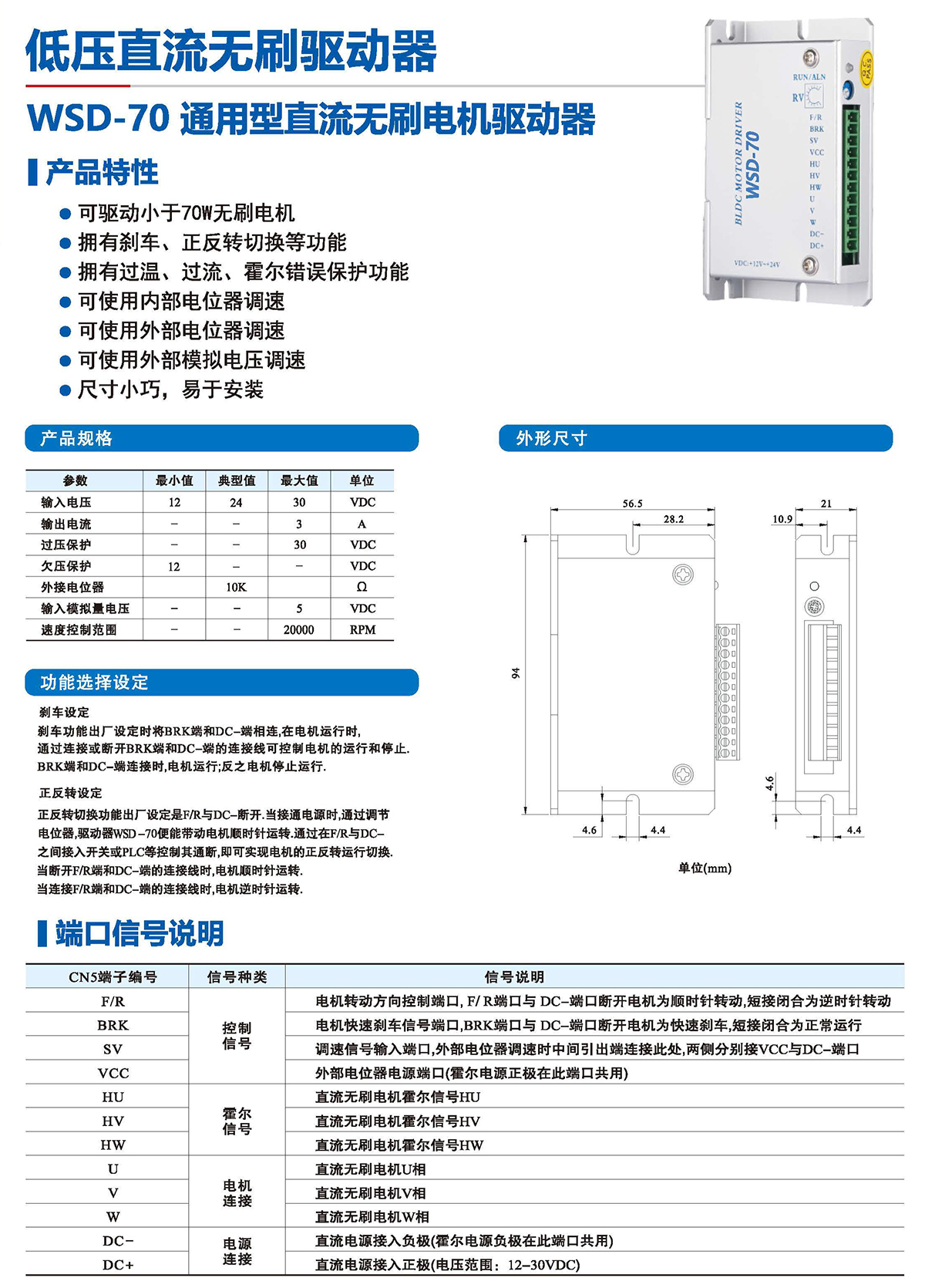 ●可驱动小于70W无刷电机