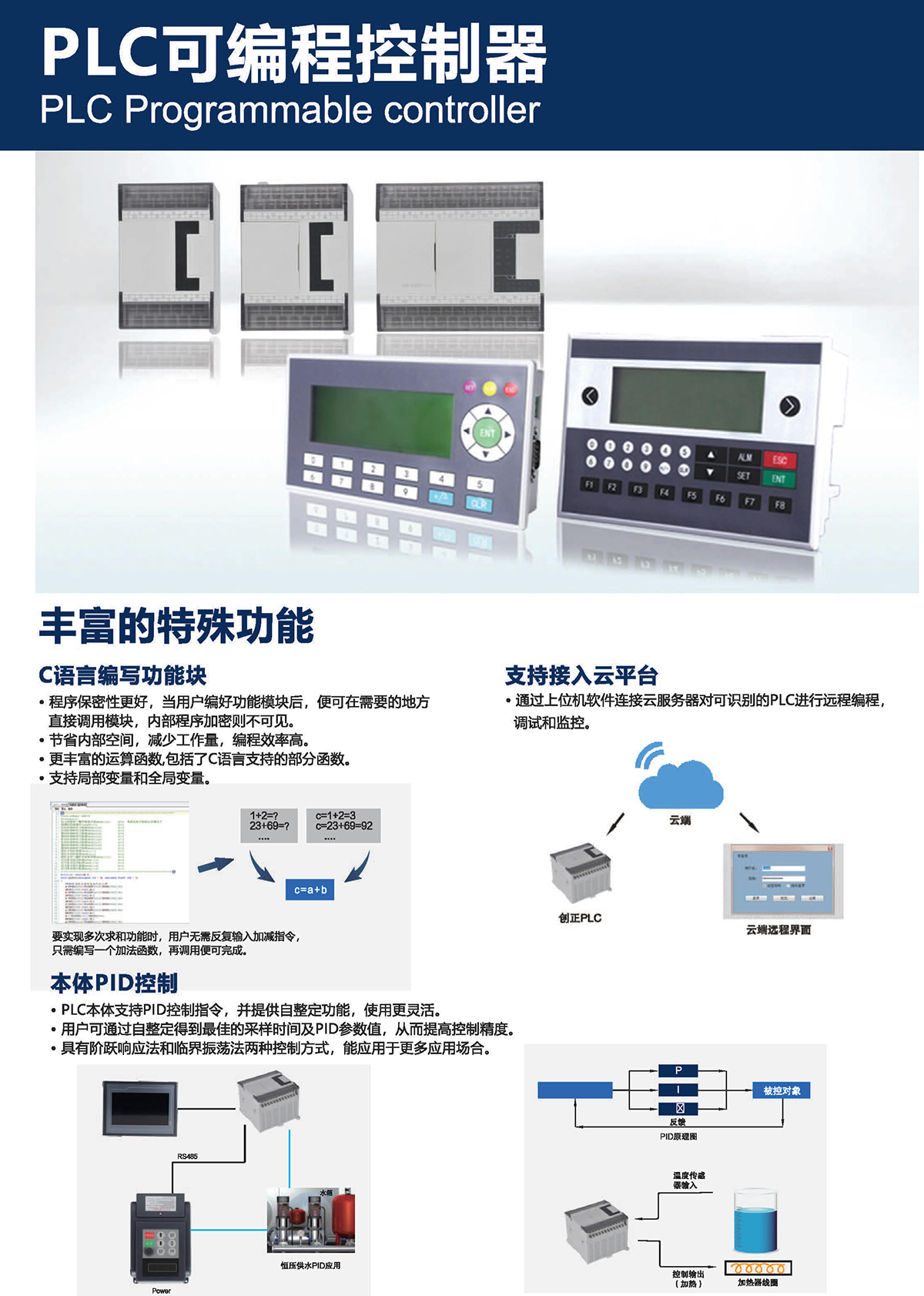 除具备标准型PLC的全部功能外,可选加一一些增强型功能,如电子 凸轮功能,支持2GWIFI/4G模块, CANopen总线通讯。