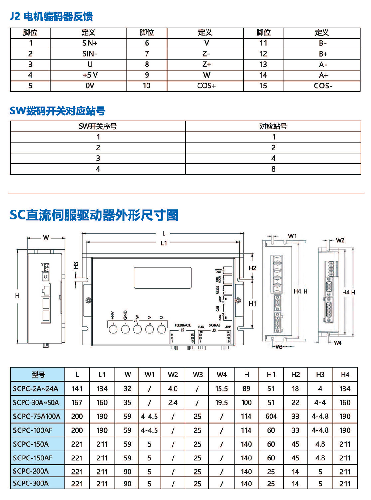 ◆位置反馈:增量式编码器、霍尔、光栅尺,模拟量正余弦( Sin/Cos )编码器、旋转变