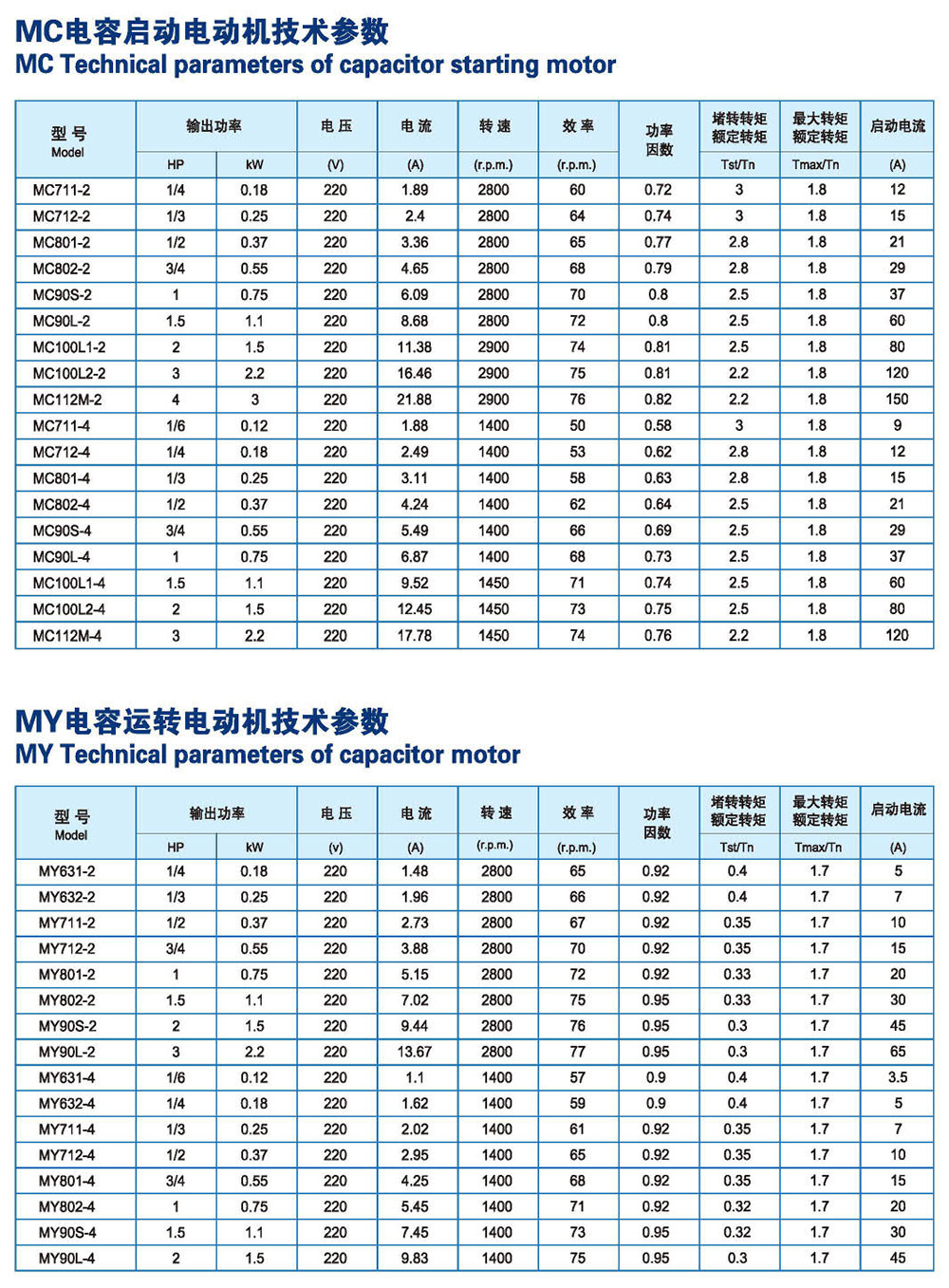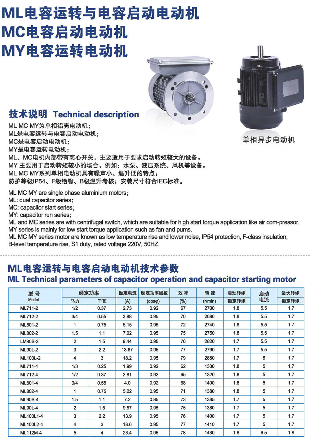 ML/MC/MY电容启动与运转电动机